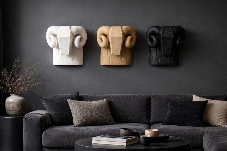VEGG hrútur XL stór ómálaður, 38 cm hæð, 37 cm breidd, 24 cm þykkt.